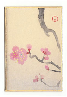 2月6日の誕生花 【野梅・内裏(やばい・だいり)】 花言葉:陽だまり 蕾がやや紅色でちょっと尖がった品種。淡く恥らうように上気したほの紅ひ花色が何とも雅やか。八重に咲くその外側が最も濃く、若枝まで紅色に染まって、 いったい何が恥ずかしいのやら…。シャイな日本人好みの床しい梅なんです。 |