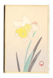 2月9日の誕生花 【喇叭水仙(らっぱすいせん)】 花言葉:尊敬 黄色がつよいもの、薄黄色のもの、殆ど白いもの、花芯が珊瑚色のもの、ほんのり紫がかったもの、などなど、非常に品位溢れる沢山の変化種があります。あ まりの美しさに水にわが身を映して、その姿に恋してしまう??っていう話は、ホントなのかも。 |